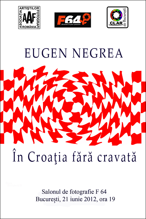 Fotoclubul Clar de București vă invită joi, 21 iunie 2012, ora 19:00, la Salonul de Fotografie F64 din blv. Unirii nr. 45 la vernisajul expoziţiei “În Croaţia fără cravată “ a artistului fotograf Eugen Negrea.