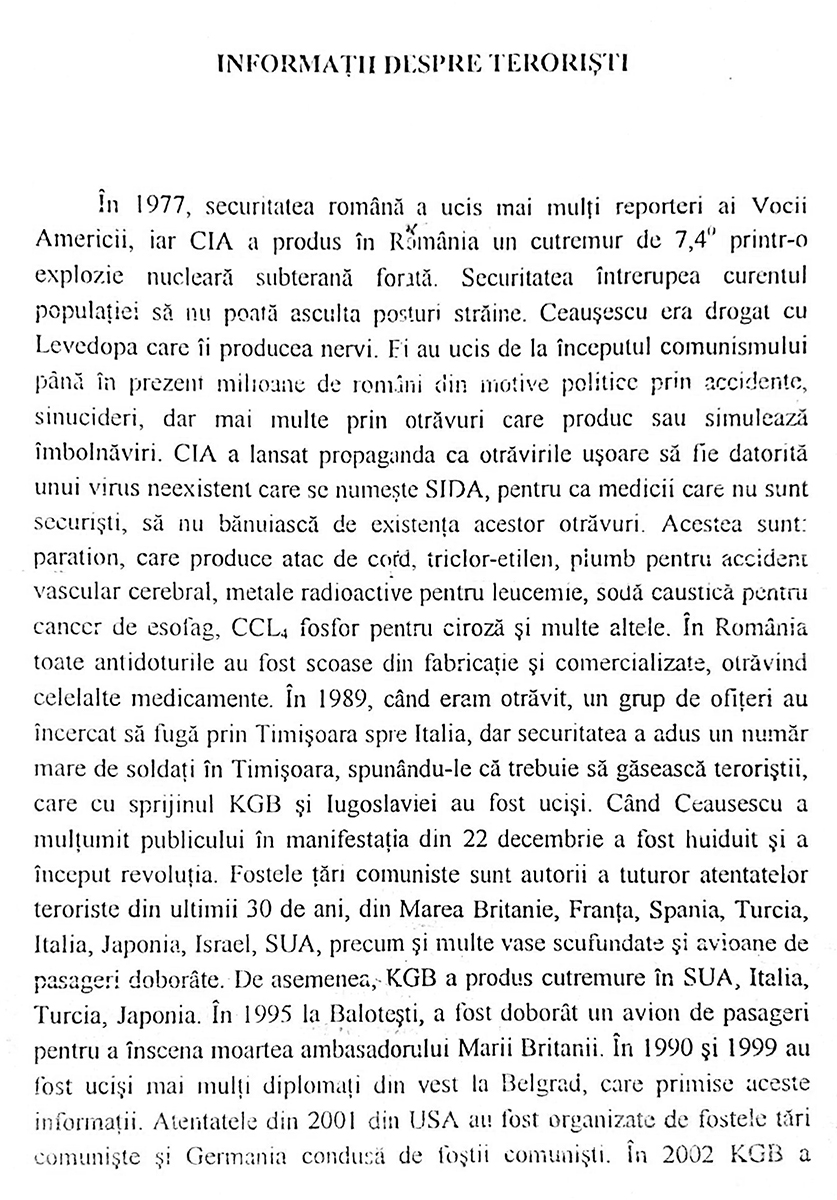 Nu ne cunosteam intre noi; poate greseam sau ajungeam la rezultate demne de luat in seama urmand cai gresite. Totusi ne-am dat seama ca se intamplau lucruri prea stranii ca sa fie vorba de un caz simplu. Am incercat sa iau legatura cu jurnalisti dintre cei mai seriosi si influenti la acea epoca, cu televiziunea de stat, reviste stiintifice: nimic. Mi-am dat seama ca informatia specializata e complet manipulata de puteri oculte internationale.