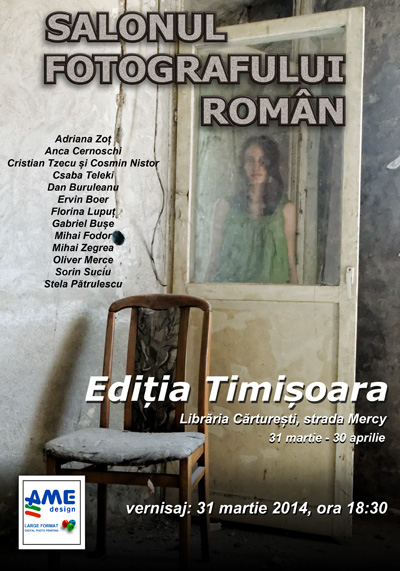 Acestea vor fi expuse pe perioada 31 martie – 30 aprilie la Salonul Fotografului Roman – Ediția Timișoara, găzduit de Librăria Cărturesti Mercy. Vor expune Adriana Zoț, Anca Cernoschi, Cristian Tzecu și Cosmin Nistor, Csaba Teleki, Dan Buruleanu, Ervin Boer, Florina Lupuț, Gabriel Bușe, Mihai Fodor, Mihai Zegrea, Oliver Merce, Sorin Suciu, Stela Pătrulescu.