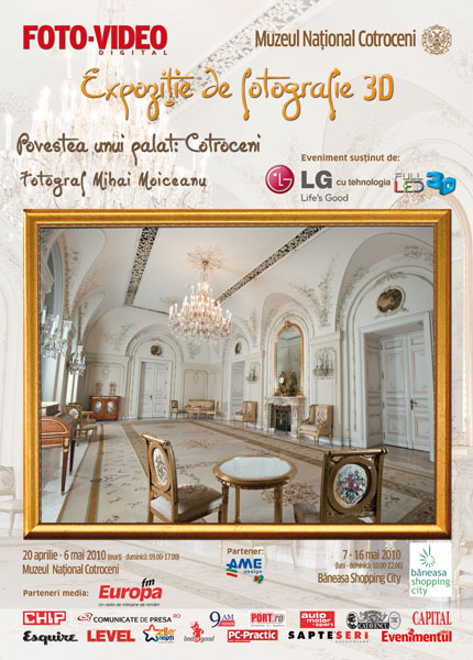 Vernisajul Expoziţiei de fotografie 3D „Povestea unui palat: Cotroceni” va avea loc marţi, 20 aprilie 2010, în cadrul Muzeului Naţional Cotroceni, iar expoziţia va fi accesibilă publicului în perioada 21 aprilie – 6 mai 2010, urmând a fi reluată în Băneasa Shopping City, între 7–16 mai 2010 (pentru această locație este posibilă o modificare a acestei perioade). Vizualizarea se face cu ochelari speciali, disponibili la intrare.